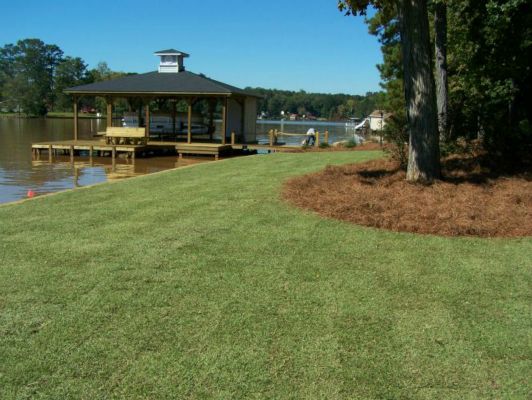 Project included grading, sod installation, and landscaping. They view from this lovely lakeside home is now the envy of the neighborhood.